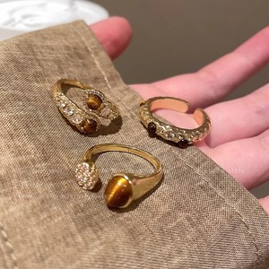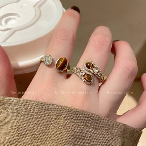 美拉德虎眼石锆石戒指女生2025新款轻奢高级感食指戒时尚个性指环