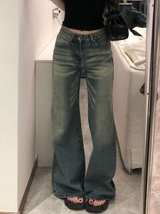 高腰阔腿微喇裤不贴腿百搭微喇直筒牛仔裤女秋季复古蓝显瘦拖地