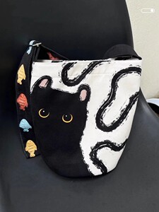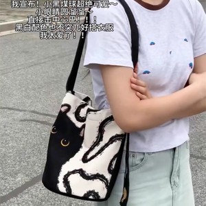 2025韩系慵懒风帆布包大容量松弛感帆布猫猫单肩斜挎包设计感小众
