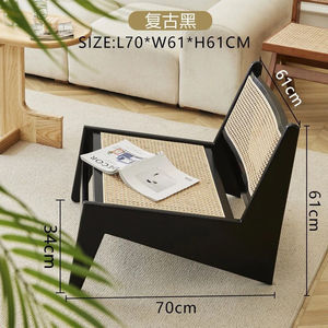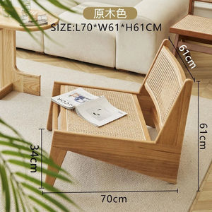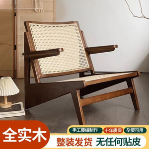 实木藤编椅子单人袋鼠椅躺椅设计师家用休闲阳台昌迪加尔懒人椅