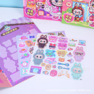 新款镭射卡通果冻贴换装造景书儿童DIY创意换装造景二合一安静书
