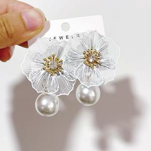 夸张立体镂空花朵珍珠耳环 彩色喷漆花卉耳坠电脑片耳饰跨境