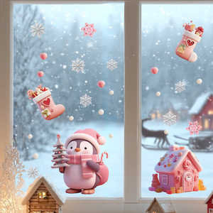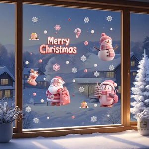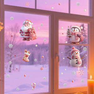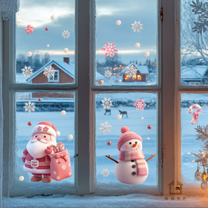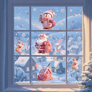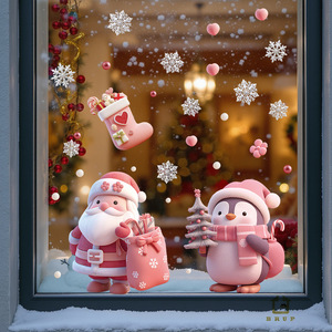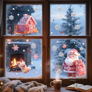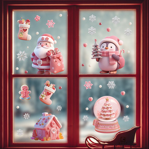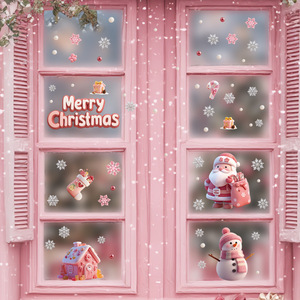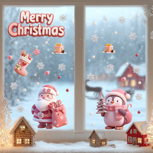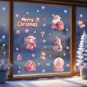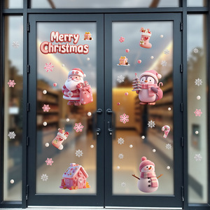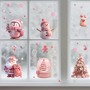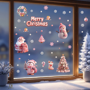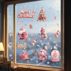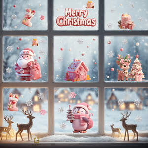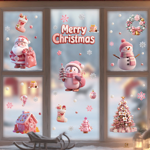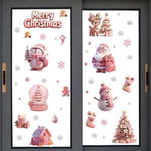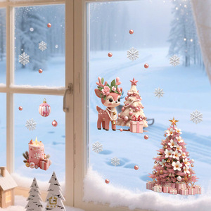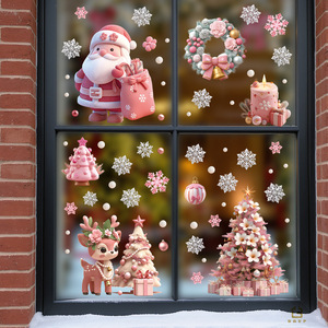粉色圣诞节静电装饰窗贴圣诞树温馨节日氛围贴纸Merry Christmas