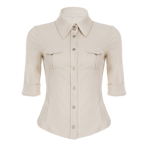 美式复古街头工装风口袋排扣翻领衬衫千禧辣妹收腰显瘦百搭上衣女