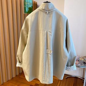 感蕾丝花边单排扣风衣女气质飘带袖口宽松立领夹克春秋上衣女