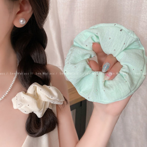 薄荷曼波绿大肠发圈女夏天侧马尾肥肠头绳韩系温柔满天星头花发饰
