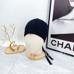 小香双C家针织帽网红同款蝴蝶结时尚毛线帽子秋冬保暖冷帽批发