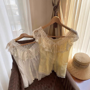 纯欲白色蕾丝拼接无袖衬衫女夏季新款收腰设计感辣妹显瘦气质上衣