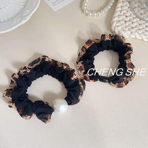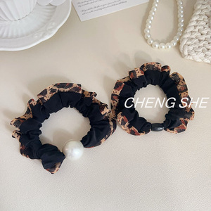 时尚新款百搭豹纹肠圈发绳韩国奶咖扎丸子头皮筋洋气简约发饰发圈