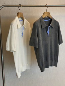 2025夏季新款宽松百搭纯棉半袖休闲拼接衬衫polo领针织短袖衫女