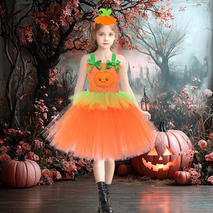 欧美童装南瓜服装万圣节狂欢派对儿童连衣裙女童表演网纱公主裙子