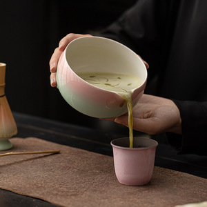 粉绿渐变抹茶碗+茶筅立【亮光系】
