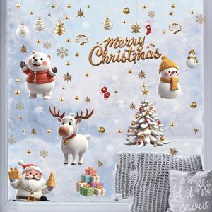 2025年圣诞窗贴卡通圣诞老人玻璃窗装饰静电贴麋鹿雪花圣诞树贴花