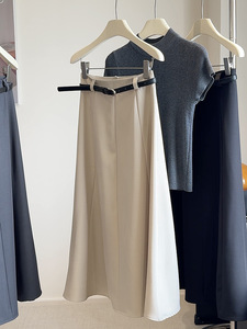垂感A字大摆西装半身裙女2025秋季新款优雅通勤显瘦中长款伞裙子