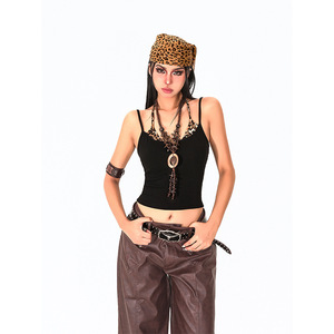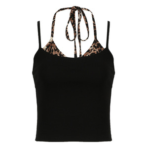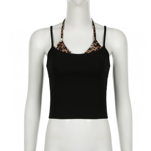 显瘦拼接假两件外穿修身纯欲辣妹吊带背心季无袖上衣女夏豹纹美式