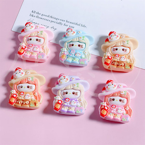 创意卡通郊游探险KT小女孩树脂配件 手工diy奶油胶贴片钥匙扣挂件