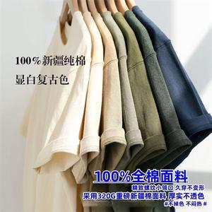 日系320g重磅纯棉短袖t恤宽松纯色百搭高级男女情侣款半袖打底衫