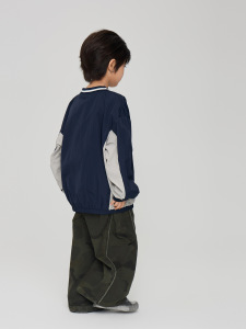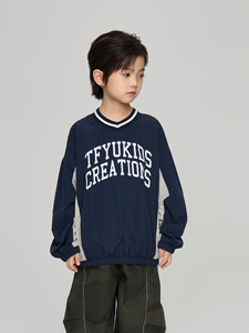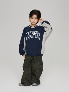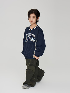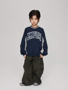 2025秋季新款儿童美式复古撞色宽松卫衣男中大童帅气棒球服外套潮