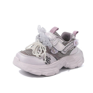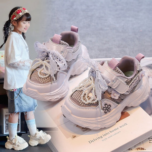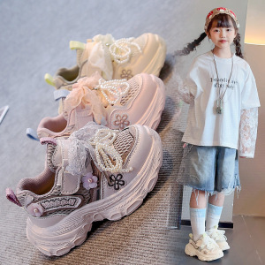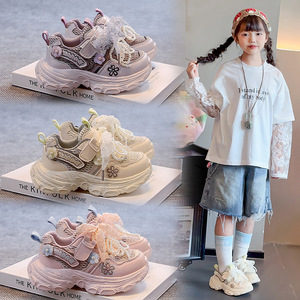 女童网面运动鞋女孩公主鞋2025秋季新款儿童鞋子中大童老爹鞋小白