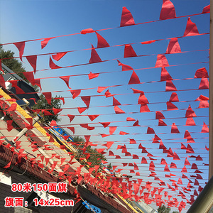 进免结婚院子小红旗拉绳彩旗挂饰三角形拉旗串旗定 制吊旗红色旗