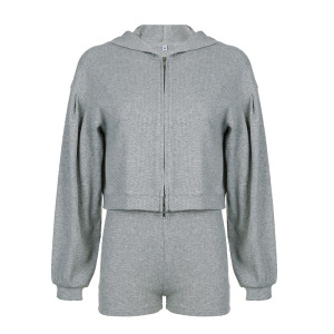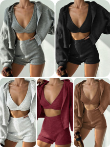 2025欧美辣妹运动休闲拉链连帽套装女秋季舒适短款上衣三件套