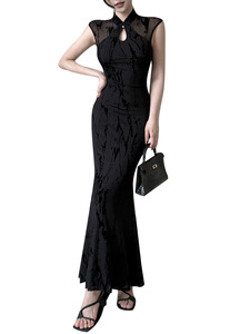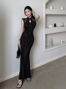 伊莉雅新中式国风镂空网纱拼接旗袍女高级感新中式连衣裙 CF25188