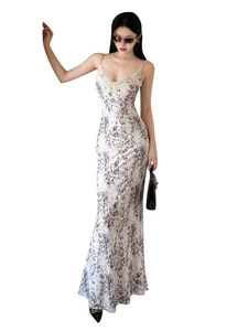 伊莉雅豹纹印花吊带连衣裙女 法式夏季收腰气质连衣裙女WQ25228