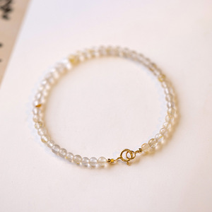 天然水晶手链女3mm天然酒红石榴石手链女14K金草莓晶粉晶手饰