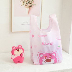 卡通折叠购物袋便携大容量环保收纳袋休闲手拎袋单肩包毛绒零钱包
