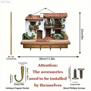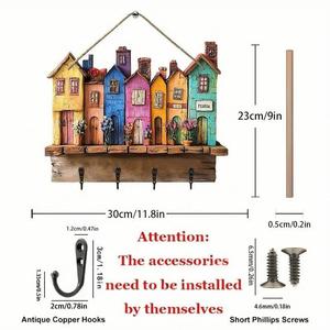 跨境热卖木质多彩小屋客厅走廊门牌钥匙扣挂架木质批发