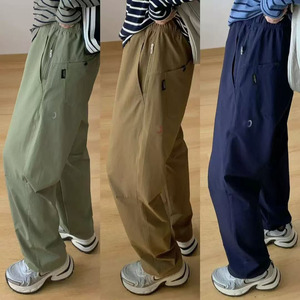 素R2025尖尖标春季新款休闲宽松直筒阔腿3色防泼水梭织格子裤直筒