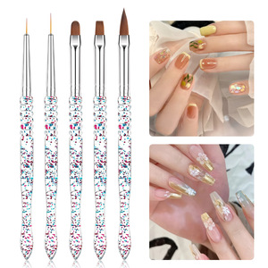 跨境新款日式亮片美甲笔套装5支珠盘杆拉线彩绘水晶雕花美甲笔刷