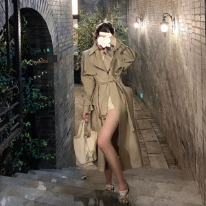2025年秋季新款高级感中长款卡其色风衣外套女收腰英伦风休闲大衣