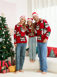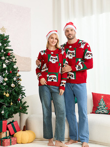 2025跨境爆款圣诞老人亲子装欧美休闲圣诞节情侣装长袖圣诞毛衣