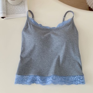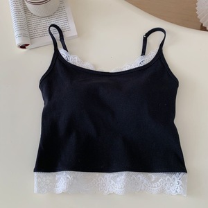 轻奢法式辣妹假两件叠穿背心女蕾丝边长款吊带美背打底衫可外穿