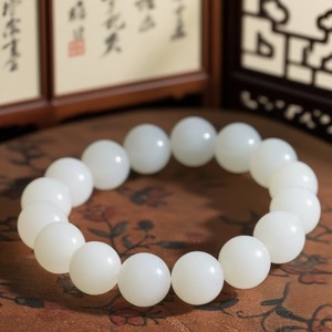 和田玉白玉圆珠手串12mm圆珠单圈散珠手链男女款直播供货