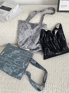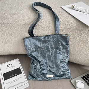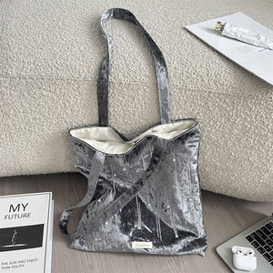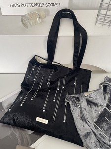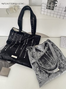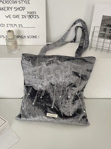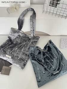 57161 时尚潮流丝绒珠珠大容量单肩包洋气ins帆布包包女士购物袋