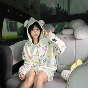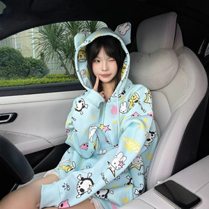 2025秋季新款休闲百搭宽松薄款设计感卡通连帽卫衣外套