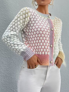 欧美跨境2025秋冬新款开衫彩虹提花短款针织衫女生外套单边一字扣