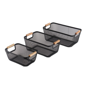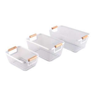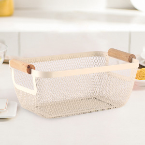 厂家直供铁艺镂空收纳篮北欧高颜值木手柄浴室桌面厨房果蔬储物筐