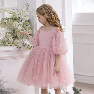 跨境儿童生日派对礼服小女孩钢琴走秀演出泡泡袖公主裙花童婚纱裙