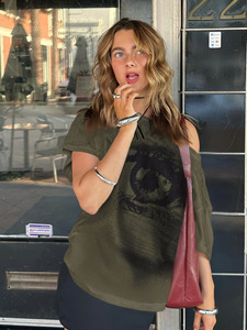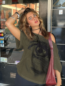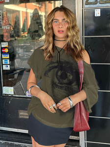 美式复古字母印花撞色拼接假两件长袖辣妹街头圆领宽松休闲T恤