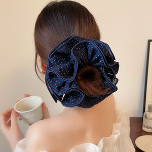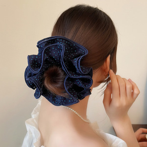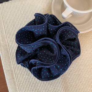 藏青时尚色系波点头花发圈女扎头发丸子头大肠圈马尾头绳四层皮筋