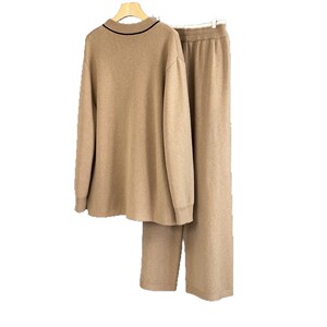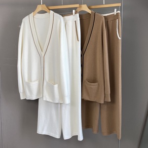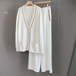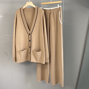 南油篙品25秋冬新款LP羊绒V领舒适开衫加休闲松紧腰直筒裤套装
