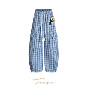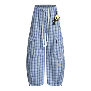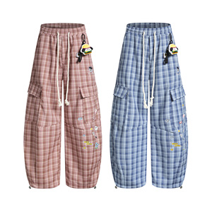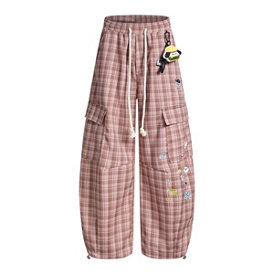 Mint Miaow 25秋季新品美式宽松格纹可爱挂坠工装口袋休闲长裤