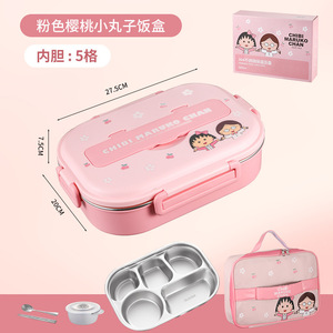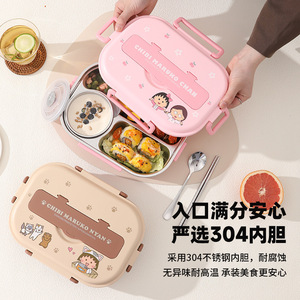 樱桃小丸子正品授权304不锈钢饭盒分格午餐盒便当盒上班便携密封