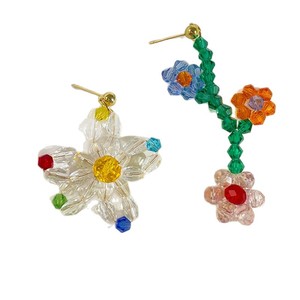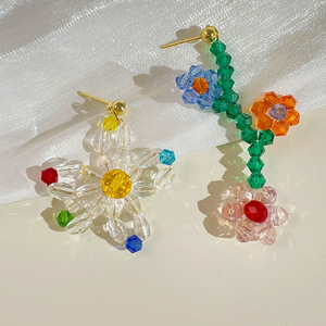 小清新甜美串珠不对称花朵耳钉女法式田园风温柔可爱灵动俏皮耳环