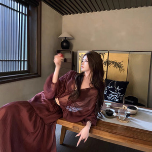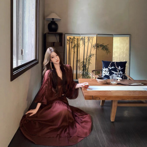 JAYKY YANGHighline系列雪纺薄纱抽褶V领上衣垂感半身裙套装
