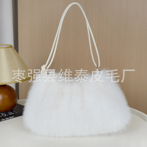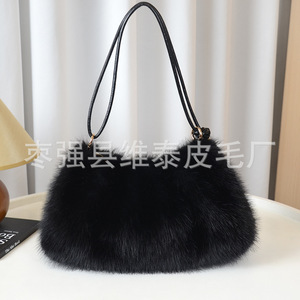 毛茸茸手提包包2025秋冬季新款时尚简约仿狐狸毛褶皱包女士托特包