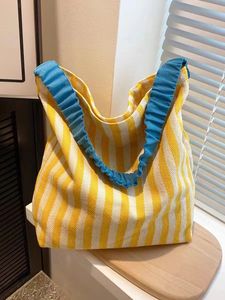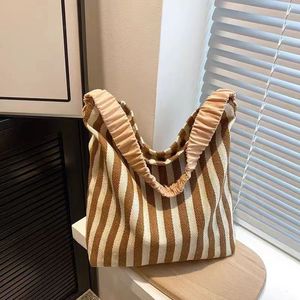 慵懒风针织布包女大容量包2025新款夏季条纹撞色文艺单肩包手提袋